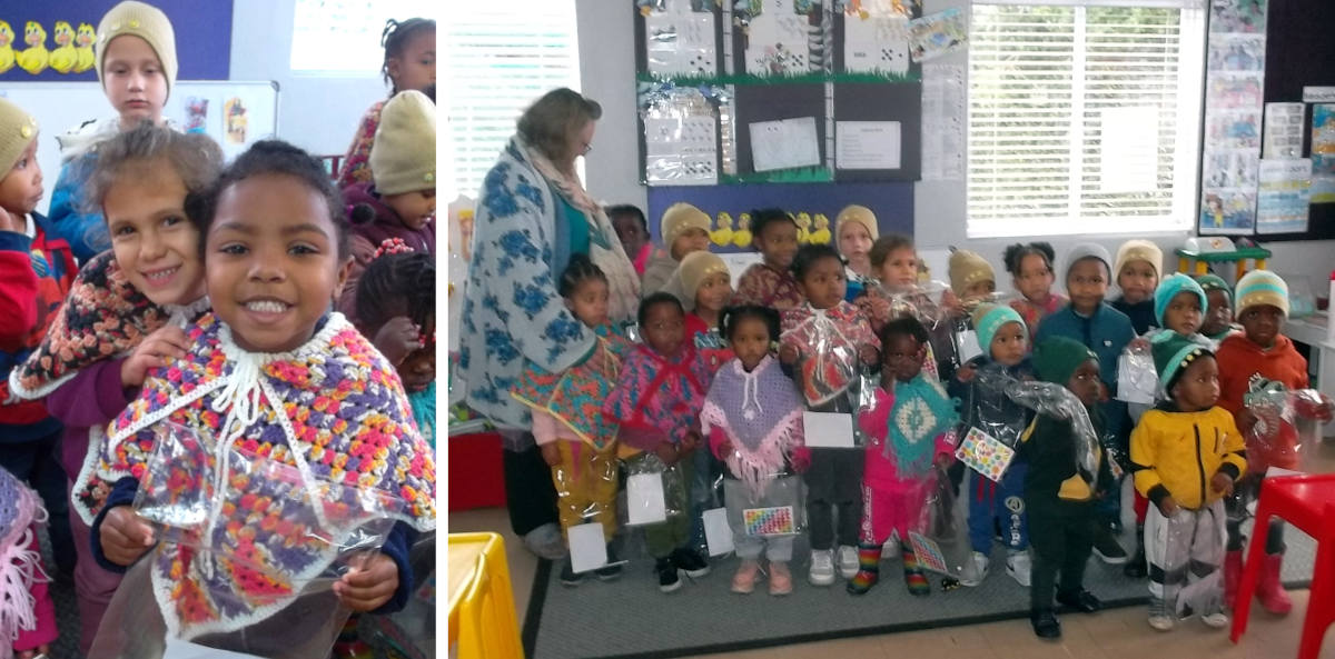 For years, there has been a donor who has gathered her group of knitters, months before the first winter rain falls to prepare a winter gift for each of the Pikke. The boys get a brand new beanie each - and my how nice it is to find out the difference a beanie makes on a wintry, windswept playground and the girls have all the pleasure of pretty ponchos to wear over drab winter wear.