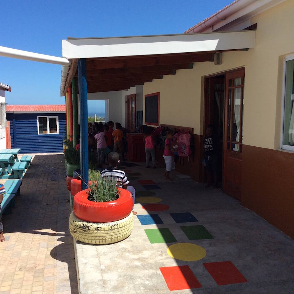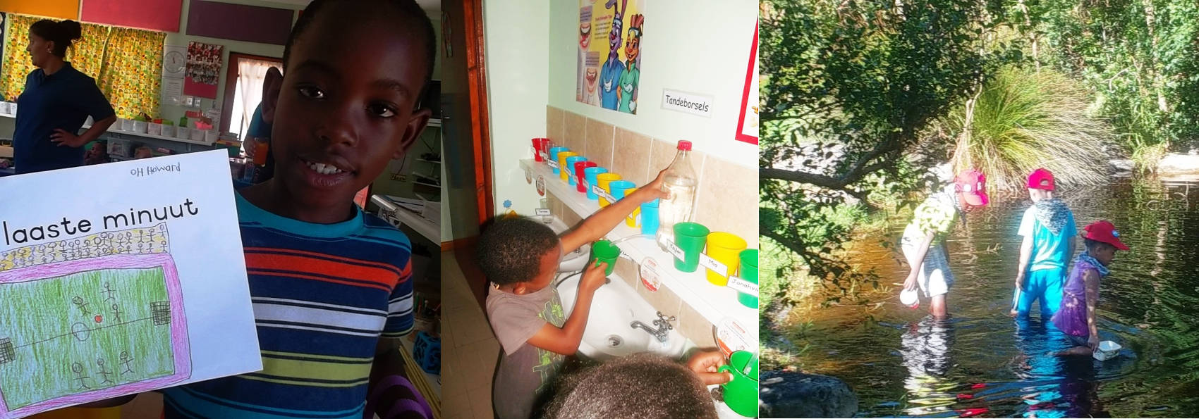 Juffrou Zaan has introduced a no running taps policy in the bathroom. Instead there are plastic cooldrink bottles fixed to the shelf above which the children squeeze once to wet their toothbrushes or several times to get a drink.