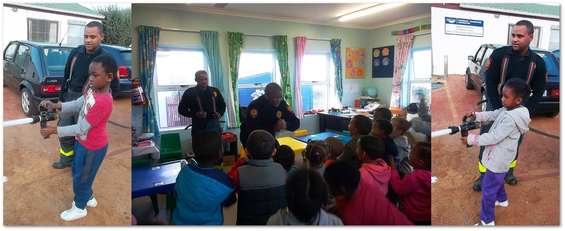 They gave an educational speech to the children and thereafter, each child had a turn to spray water.