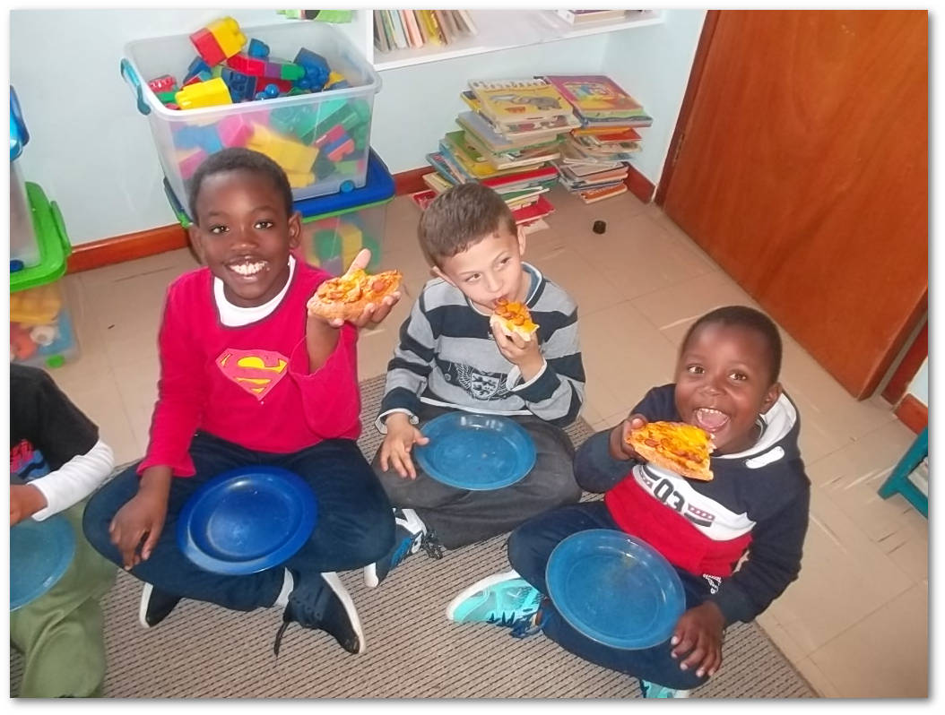 PIZZA LUNCH: TANNIE LOUISE (OUR COOK) SPOILT THE KIDS WITH PIZZA