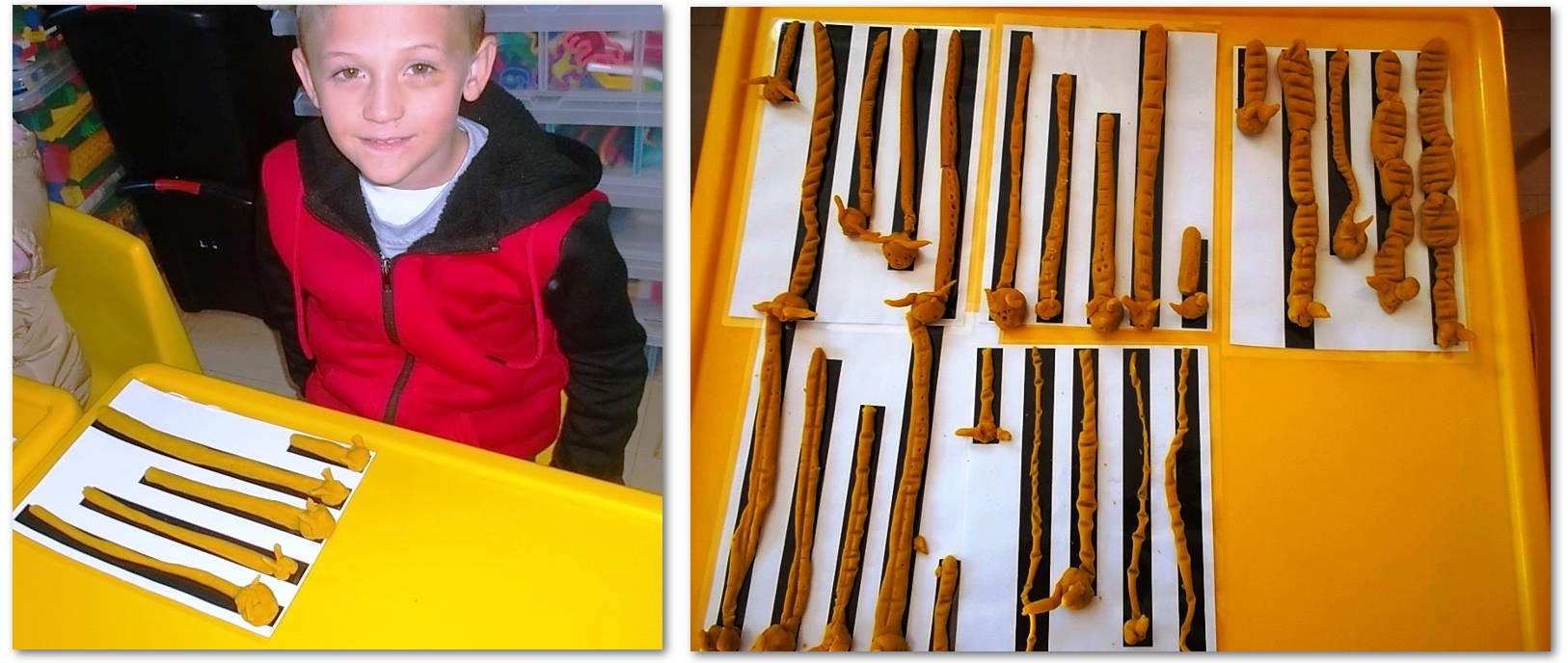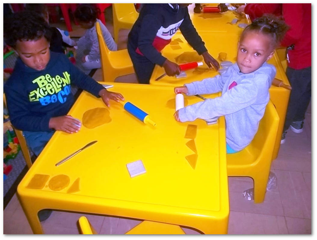 Rolling out clay and cutting out various shapes.
