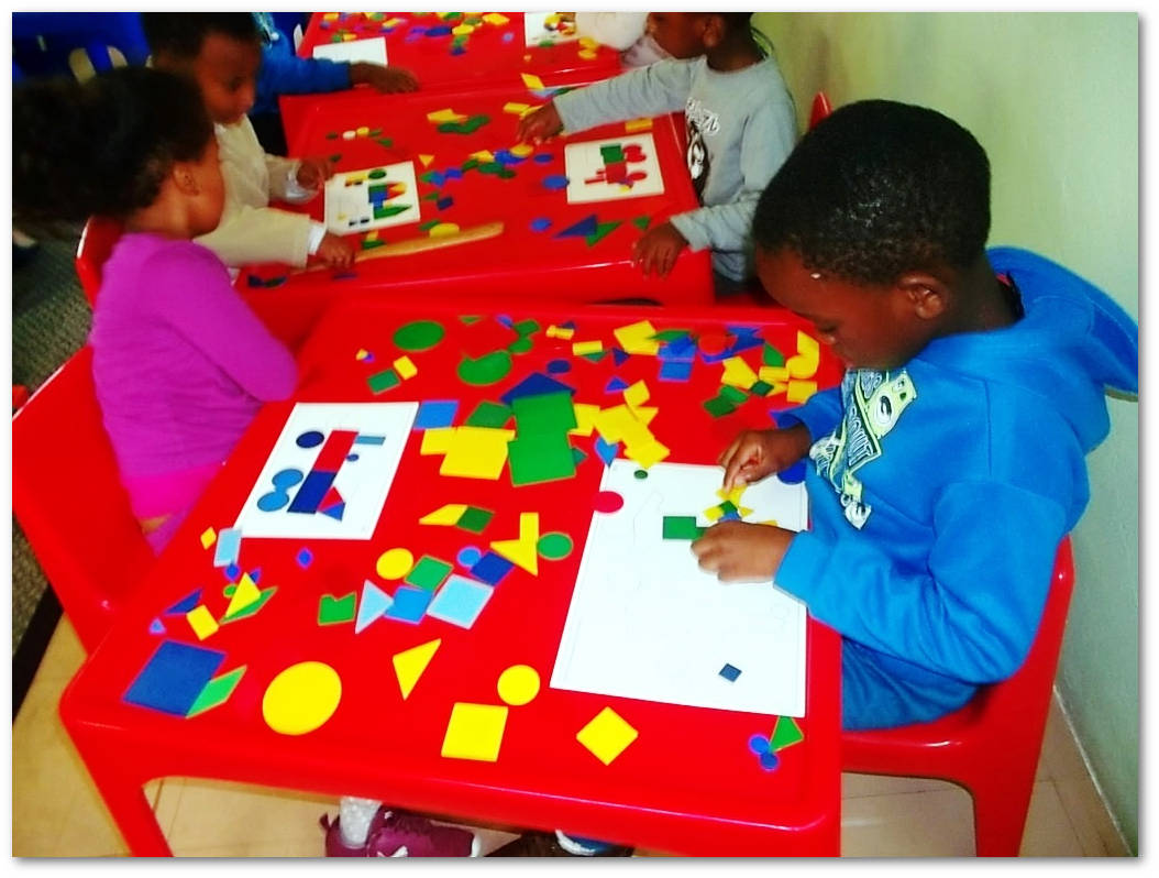 MAKIND A PICTURE USING DIFFERENT SHAPES, SIZES AND COLOURS.