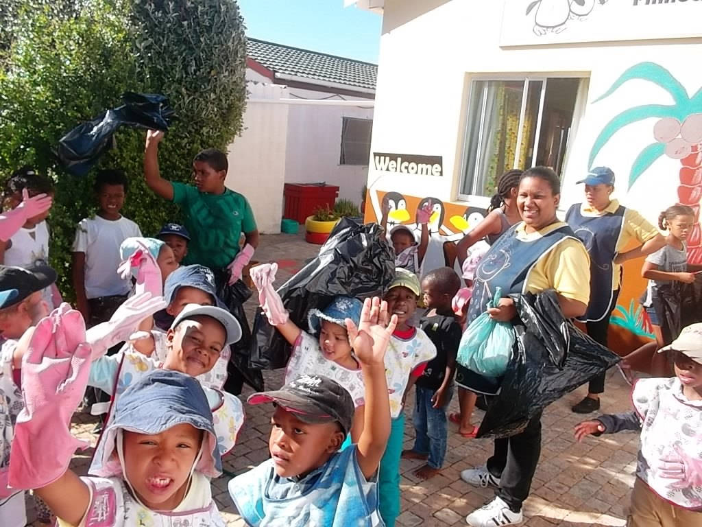 Juffrou Zaan in the last school holidays decided enough was enough and it was time for a Clean-Up. She asked the municipality for help by sending a truck to collect all the unsightly junk thrown out by the residents to rot between the houses. She told the residents to play their part by hauling the junk to the side of the road to make collection easier and she roped in volunteers to pick up litter. Of course the biggest group of volunteers was the Pikkewyntjies staff and pupils which included some past Pikkewyntjies.