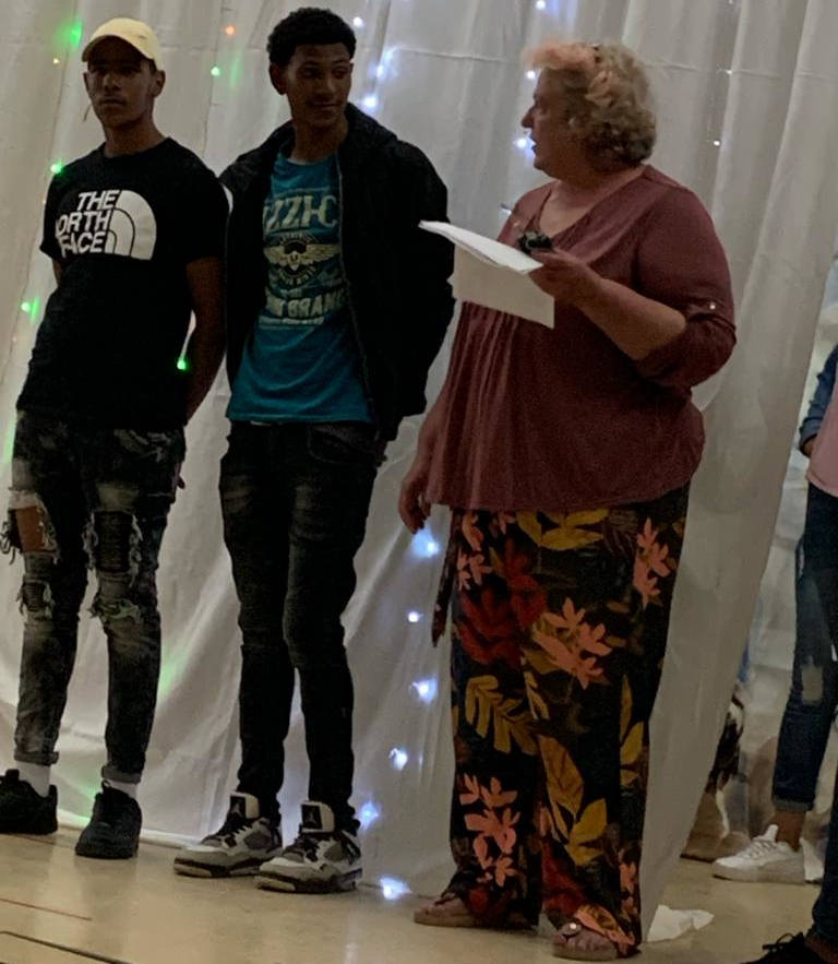 After the concert Zaan took centre stage to express her grateful thanks to everyone who hadhelped with the concert before and during the performance. Then she called three names andthree teenagers appeared on stage. She introduced them to us and told us one was going intostandard 9 next year and two into their matric year and that they had all started their educationat Pikkewyntjies when they were 3 years old. They had volunteered their help, she said,because they want to give back to the school. It was a story we all liked hearing.