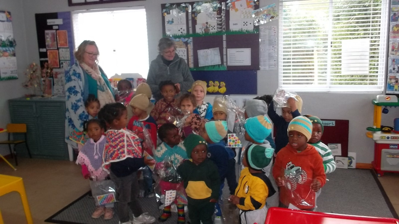 A number of our children do not live in Mooi Uitsig but at some distance from the school in Hanglkip, Pringle Bay and Rooi Els. In the winter it is still dark when Juffrou Zaan arrives with the bus and she leaves the headlights on to guide them down the path from their homes.
